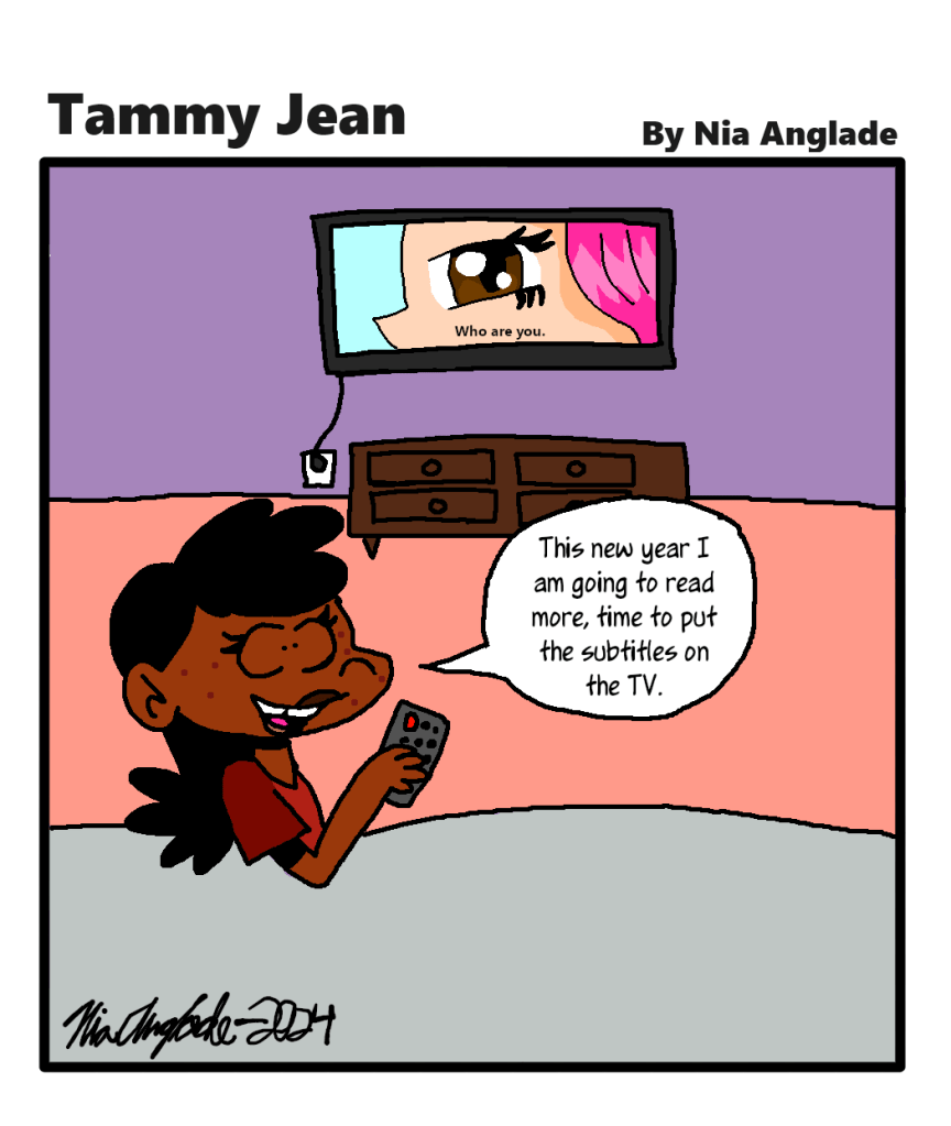 Tammy Jean #40 Starting this year I will posting once a week or on the weekends. Share this: Click to share on X (Opens in new window) X Click to share on Facebook (Opens in new window) Facebook Like Loading... Related Author: Nia Anglade I'm a Haitian cartoonist/illustrator/ comic artist who loves to draw, cartoons, anime and reading. My main hobbies are animating and writing. View all posts by Nia Anglade
