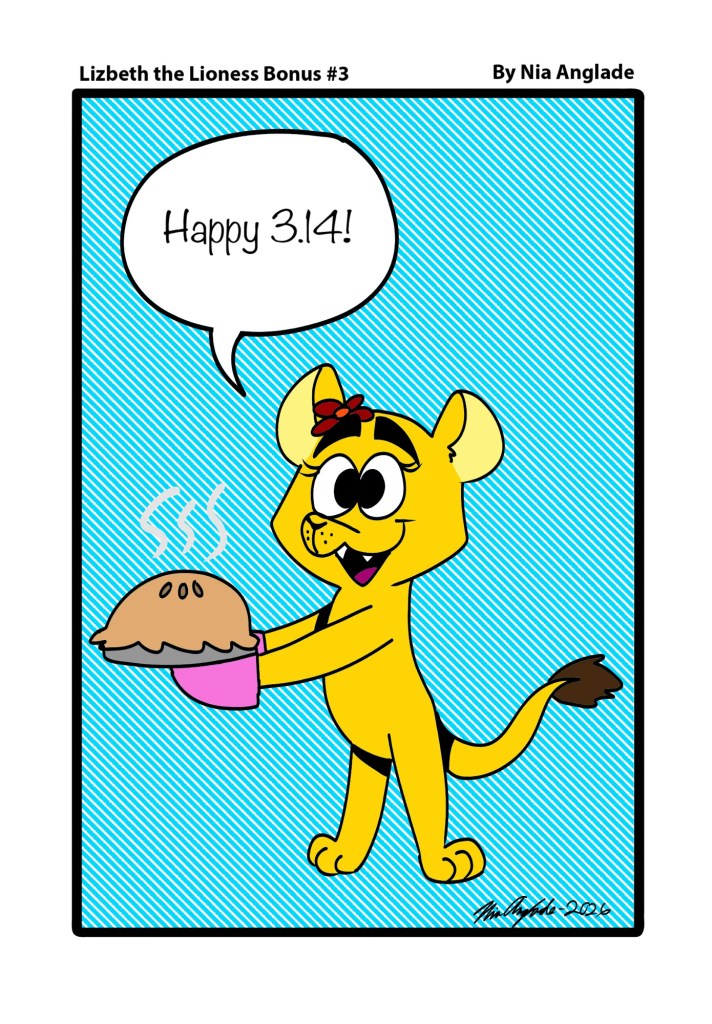 Lizbeth the Lioness bonus #3 Happy Pie Day! Share this: Share on X (Opens in new window) X Share on Facebook (Opens in new window) Facebook Like Loading... Related Author: Nia Anglade I'm a Haitian cartoonist/illustrator/ comic artist who loves to draw, cartoons, anime and reading. My main hobbies are animating and writing. View all posts by Nia Anglade