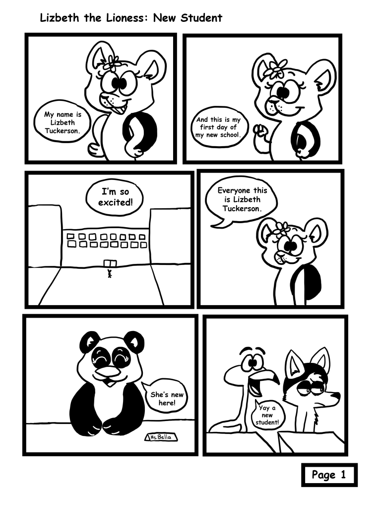 A short family-friendly comic about a young lioness named Lizbeth Tuckerson who transfer to a new school where she meets her first friends Adam and Joe.