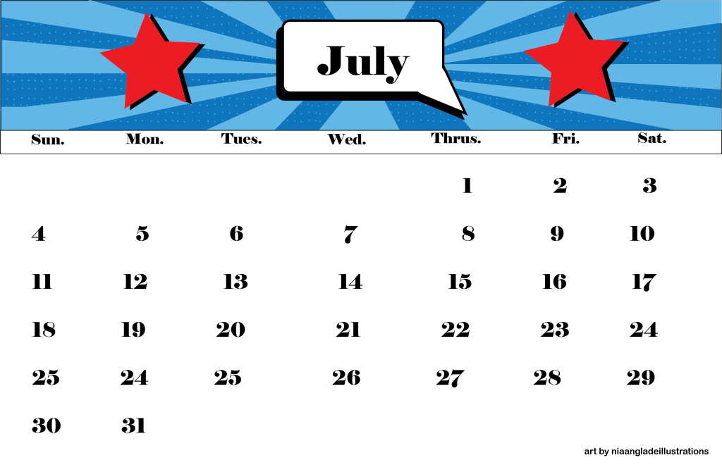 A senior project showcasing the 2021 calendar in a comic/pop-art style.