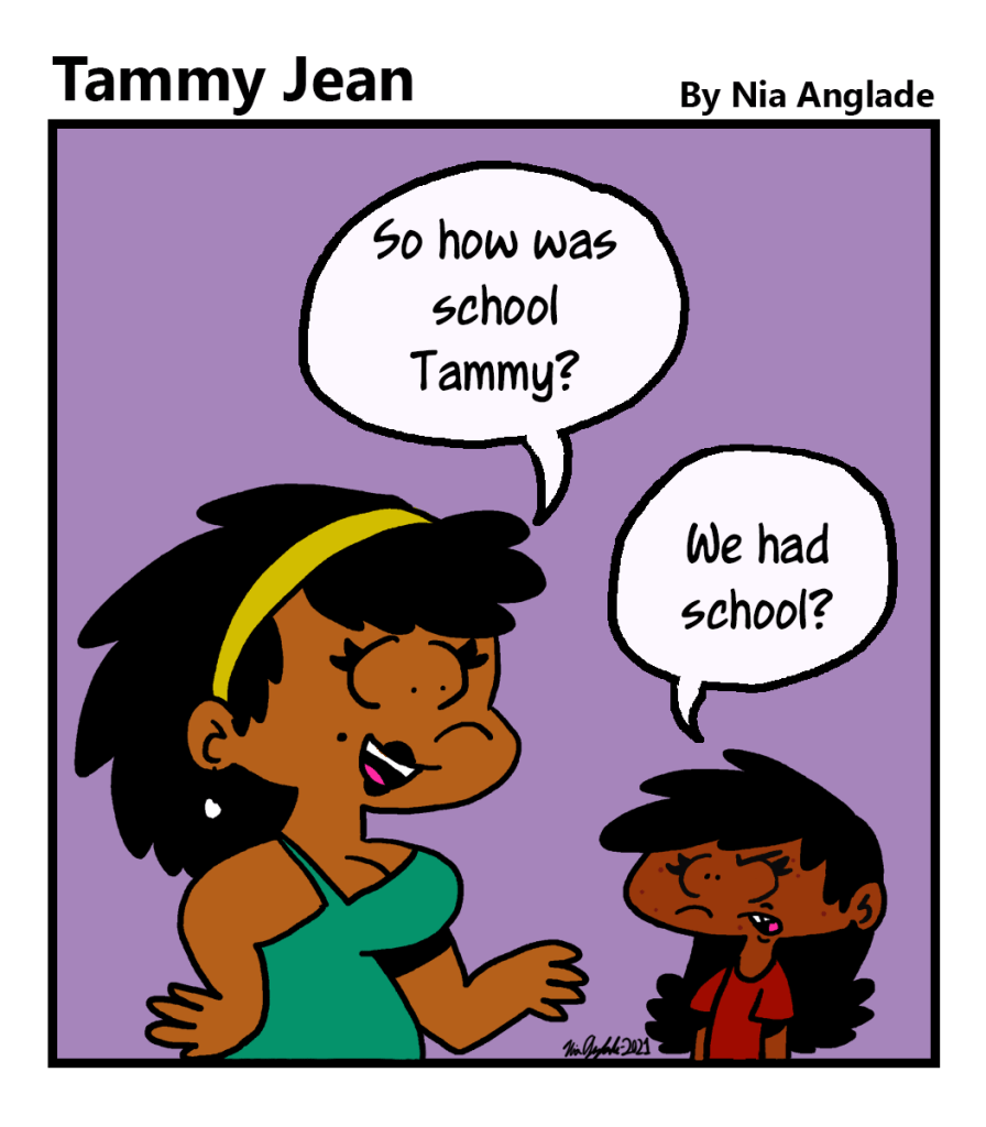 Tammy Jean started off as a senior project I did in college. The comic was inspired by the classic comics like Peanuts, The Boondocks, and The Adam Family. After completing six strips and gotten positive feedback from my professors I decided to continue the comic since the first comic I created centered on a family.
